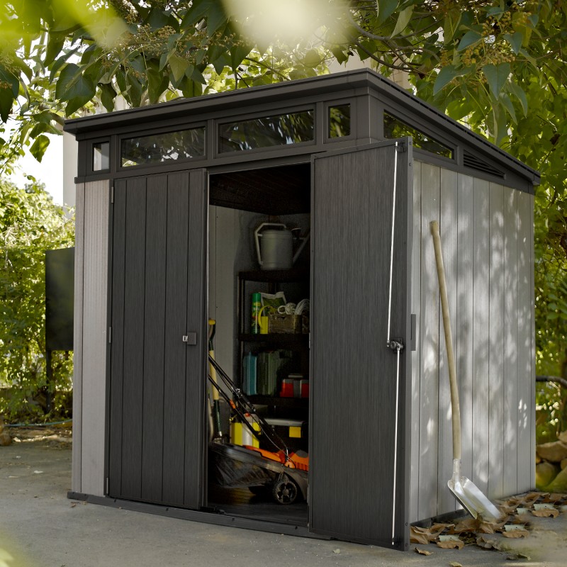 L’abri Brossium 4,7m² arbore un design épuré et moderne qui s’intègre parfaitement dans tous les types de jardins. Sa finition en résine brossée lui confère une texture subtile qui imite l’aspect du bois naturel, tout en offrant les avantages d’un matériau moderne et durable. Disponible en plusieurs couleurs, cet abri peut s’adapter à vos préférences esthétiques et compléter l’agencement de votre espace extérieur.