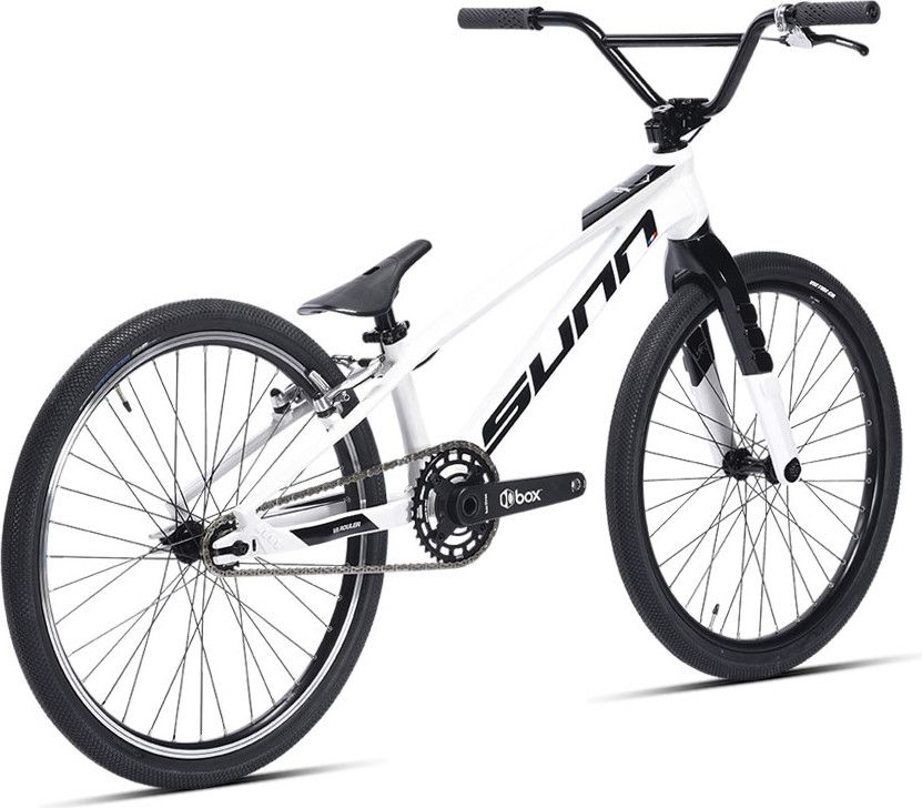 Le BMX Race Sunn Royal Finest Cruiser Pro XL 2022, léger à 9 kg, est conçu pour les courses avec son cadre en aluminium, ses roues de 20 pouces, et son freinage puissant. Son design blanc élégant allie performance et style.