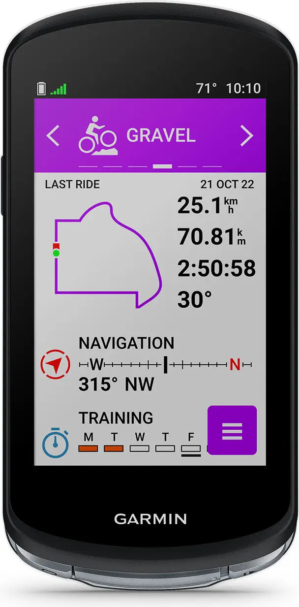 - Autonomie de la batterie prolongée : L’Edge 1040 vous offre jusqu’à 35 heures d’autonomie avec écran allumé en permanence et jusqu’à 70 heures en mode économie d’énergie. Doublez l’autonomie de la batterie avec la batterie externe Garmin Charge™ en option.