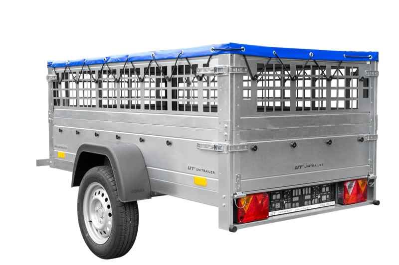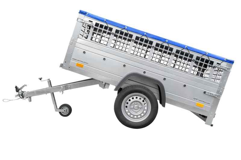 Soyez le premier à commenter “Remorque avec ridelle grillagée UNITRAILER Garden Trailer 200 KIPP 200×106 avec bâche plate grise, ridelles grillagées et roue jockey”