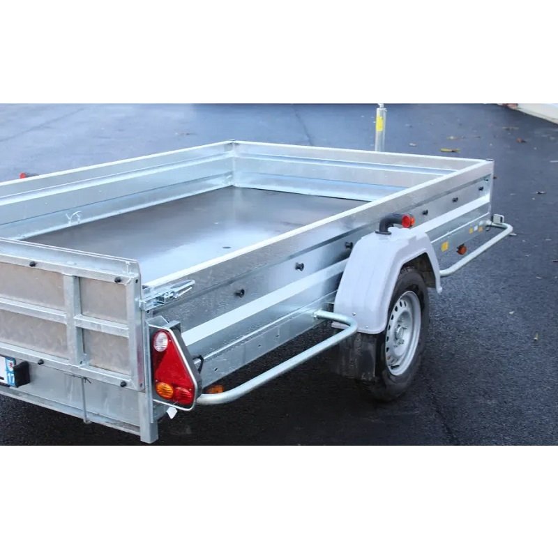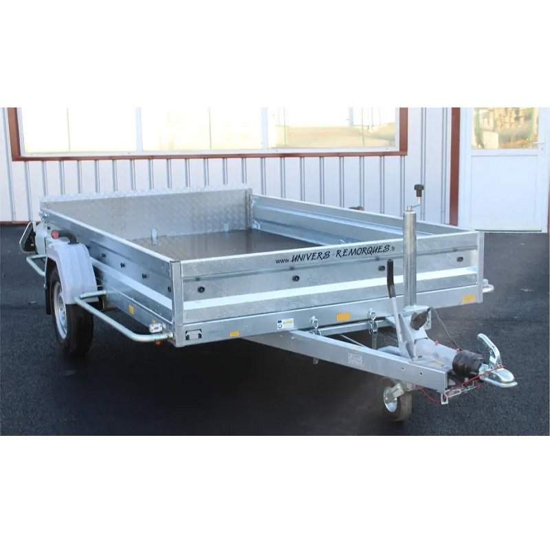 Cette remorque benne est équipée d’un attelage universel qui s’adapte facilement à la plupart des véhicules. Cela permet une utilisation flexible, que vous ayez un véhicule utilitaire léger ou un plus gros modèle pour des charges plus importantes.