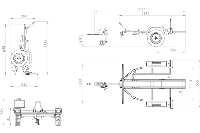 Cette remorque mesure environ 2,5 mètres de long et 1,3 mètre de large, offrant suffisamment d’espace pour transporter une moto de taille standard, voire une moto de grande cylindrée. Sa longueur permet d’adapter différentes motos, tout en restant facile à manœuvrer, même dans des espaces restreints. Sa plateforme en métal robuste est conçue pour supporter des poids allant jusqu’à 300 kg, ce qui permet de transporter en toute sécurité une large gamme de motos.