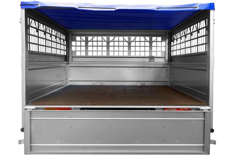 Remorque simple essieu 200×125 avec bâche plate, tiges de support bâche, ridelles grillagées et roue jockey – Garden Trailer 201 KIPP