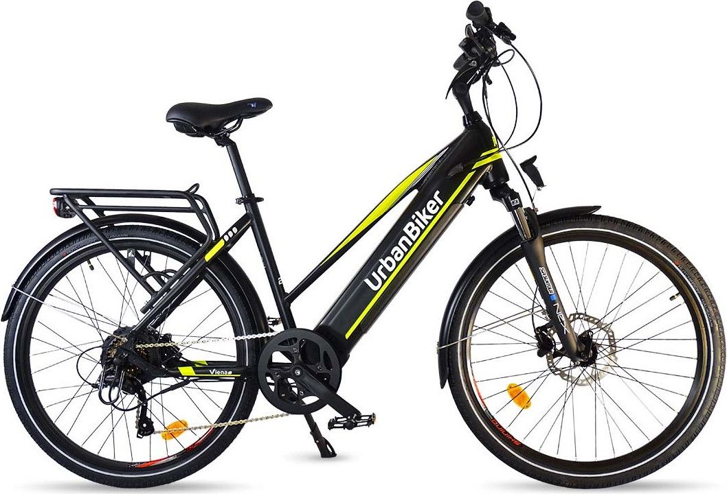 Vélo Électrique Urbanbiker VTC Viena 23 jaune, Moteur arrière 250W, 720WH (48v 15Ah)