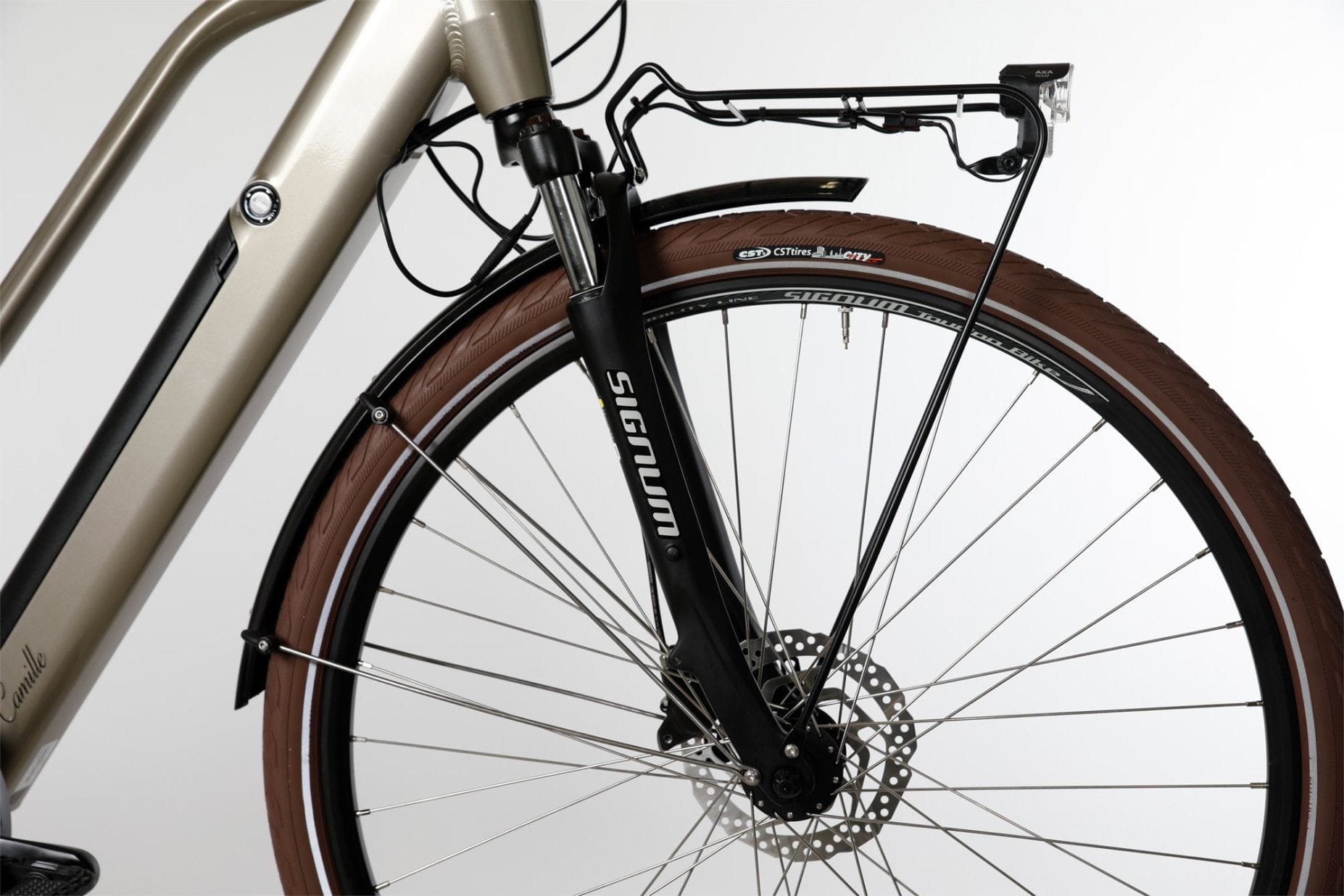 - Grâce à sa batterie de 500 Wh, intégrée au tube diagonal, le Camille dispose d’une autonomie généreuse.