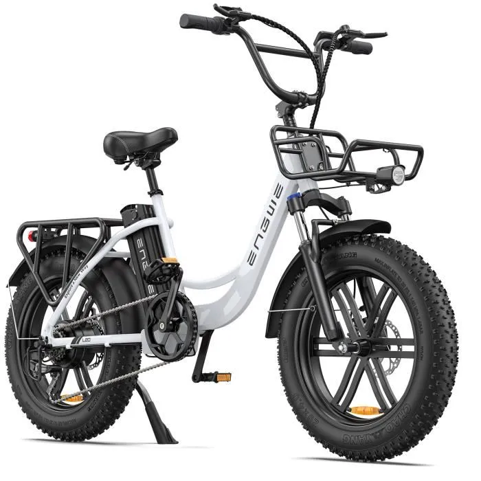 Le design du ENGWE L20 est à la fois fonctionnel et attrayant. Il est équipé de pneus fat bike de 20 pouces, qui assurent une adhérence optimale sur différents types de surfaces, qu’il s’agisse de routes pavées, de sentiers ou de chemins de terre. Ces pneus larges offrent également une meilleure stabilité, réduisant les risques de glissade et augmentant le confort de conduite, même sur des terrains accidentés. Grâce à cette caractéristique, le ENGWE L20 est capable de s’adapter à une variété de conditions de route, rendant chaque trajet sûr et agréable.