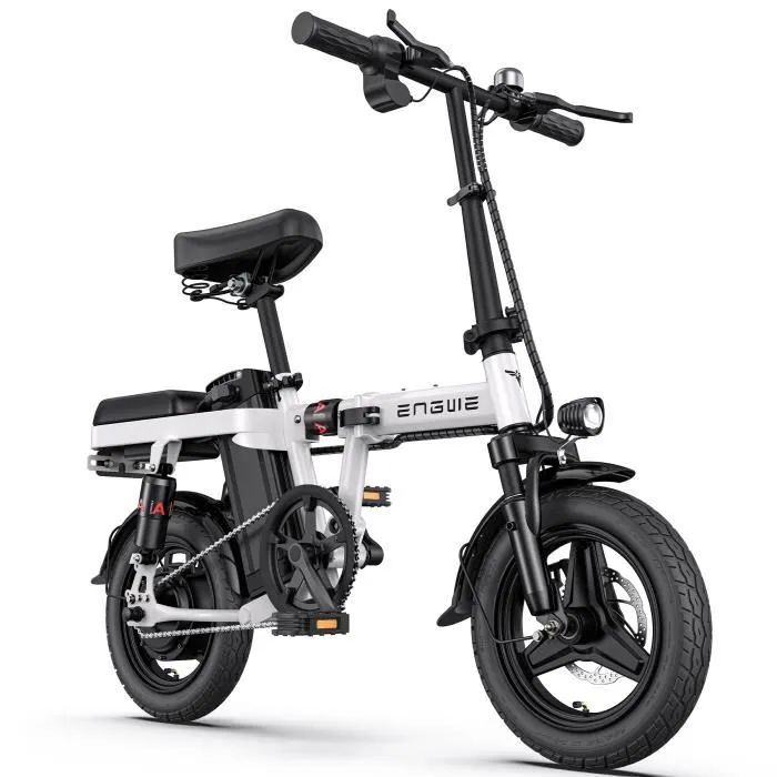 velo electrique pliable ENGWE T14 14 pouces 25km/h Moteur 250W Autonomie 42km avec amortisseur avant vélo de ville 48V10Ah Blanc
