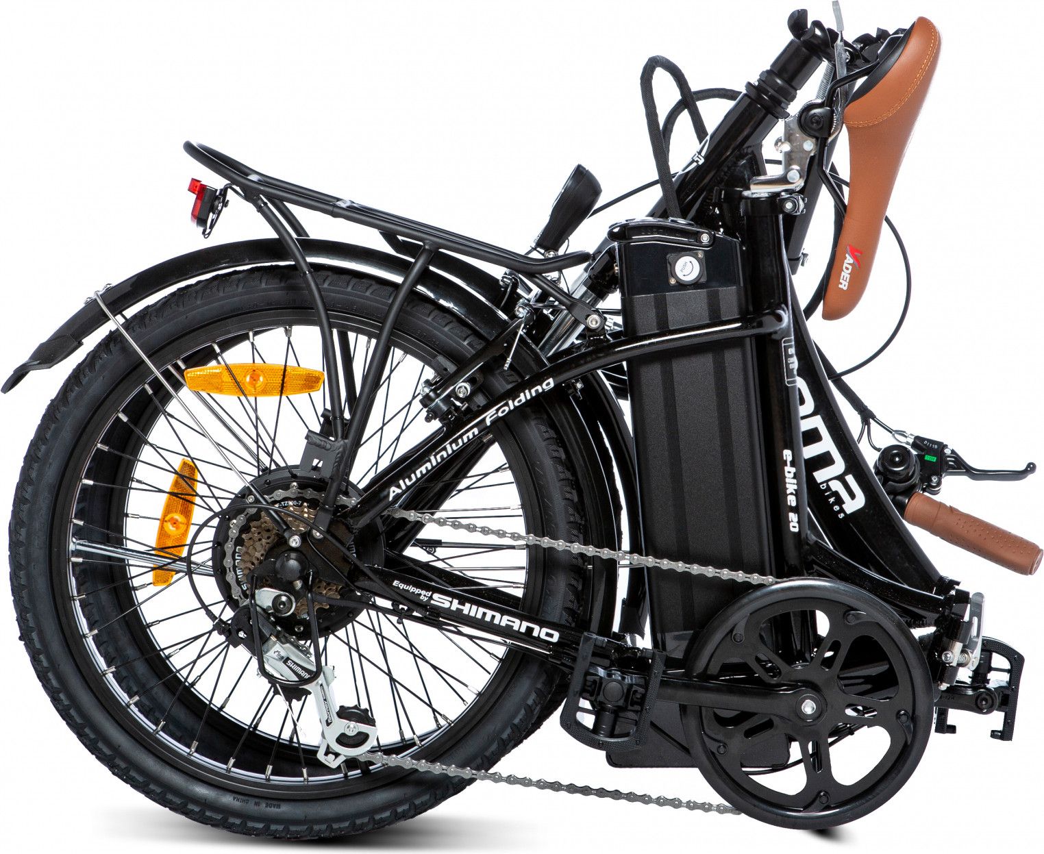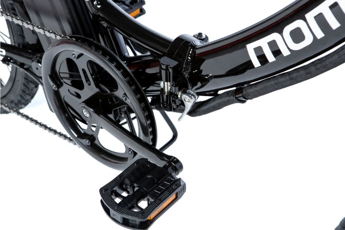 Le Vélo Pliant Électrique Moma Bikes E-20.2 Noir est léger (22 kg) avec une batterie 480Wh et un moteur 250W. Il offre une conduite pratique grâce à sa transmission Shimano 7 vitesses et son design pliant élégant, parfait pour les trajets urbains quotidiens.