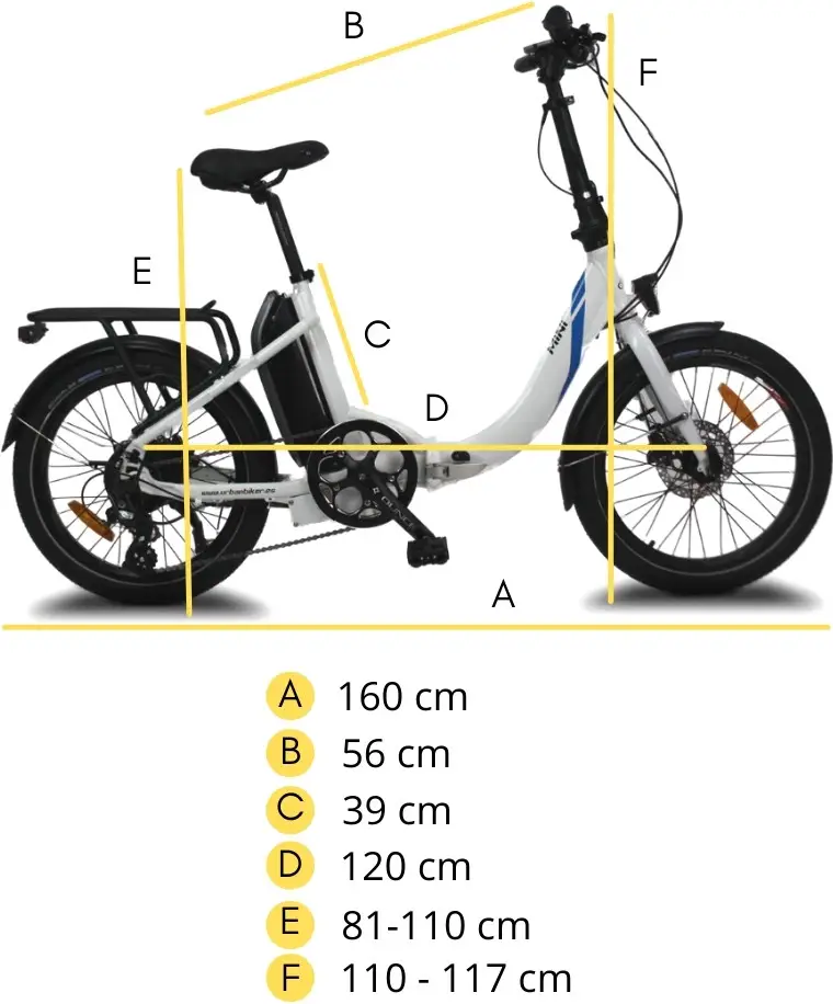Le Vélo Pliant Électrique URBANBIKER MINI T 20′ Blanc est compact et pratique, avec une batterie de 540Wh pour une autonomie jusqu’à 70 km. Équipé d’un moteur de 250W, il pèse environ 22 kg, offrant un pliage facile pour un rangement pratique. Idéal pour les trajets urbains.
