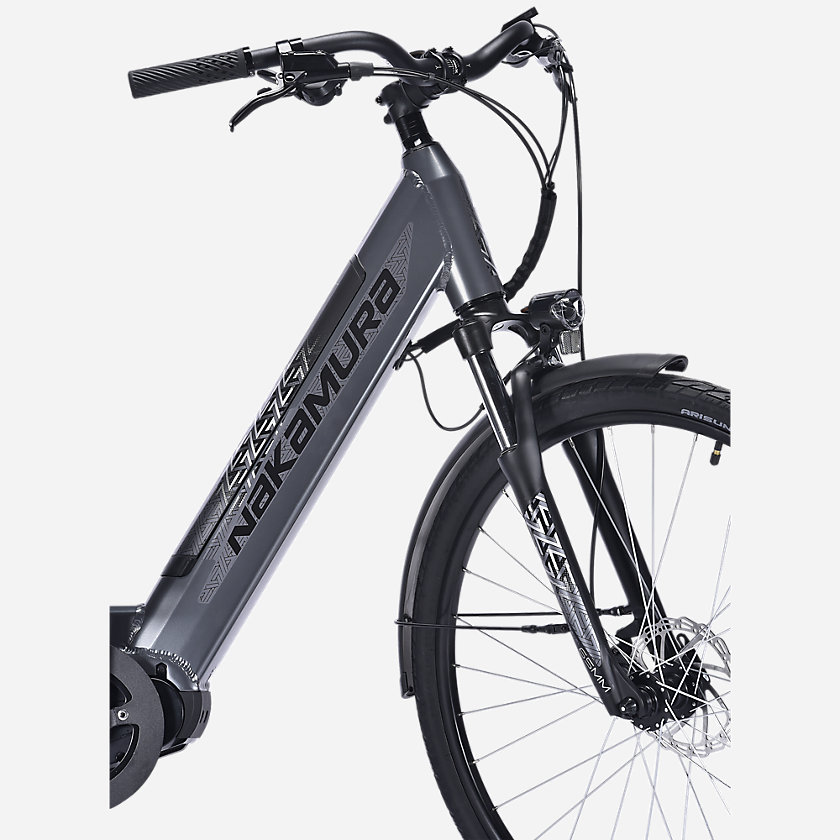 Vélo de ville électrique adulte E-City 70 GRIS NAKAMURA