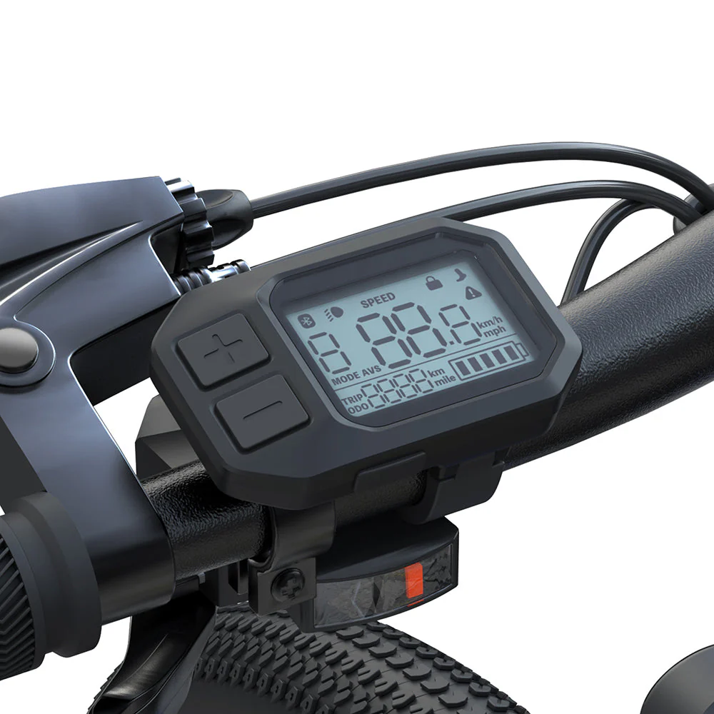 Le vélo dispose d’un écran LCD intégré au guidon, qui affiche les informations essentielles telles que la vitesse, le niveau de la batterie et les modes d’assistance. Cet écran permet aux cyclistes de suivre facilement leurs performances et de gérer les réglages du vélo en temps réel. Il est conçu pour être lisible en toutes conditions de lumière.